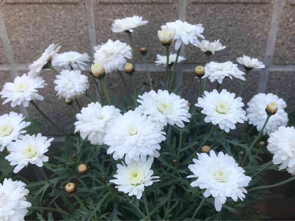 シンジェンタさんのマーガレット・モリンバ・ミニダブルホワイト、日陰でもこんなにたくさん咲いてくれています👍💕
