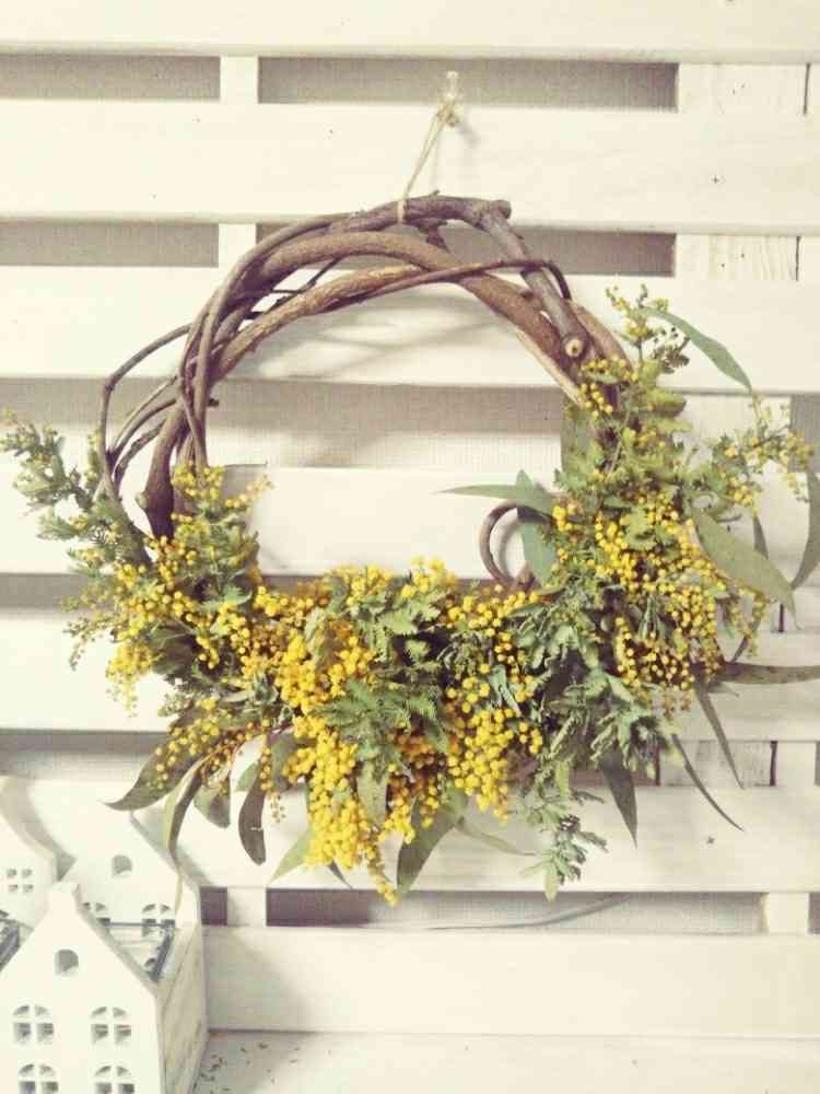 ミモザの日(3/8)に作ったリースが綺麗にドライになりました。