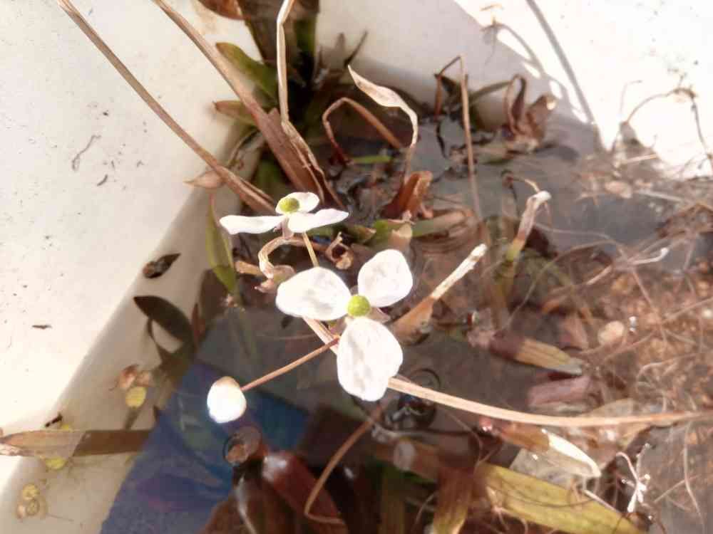 冬休み中のビオトープでナガバオモダカの花が咲いた✨