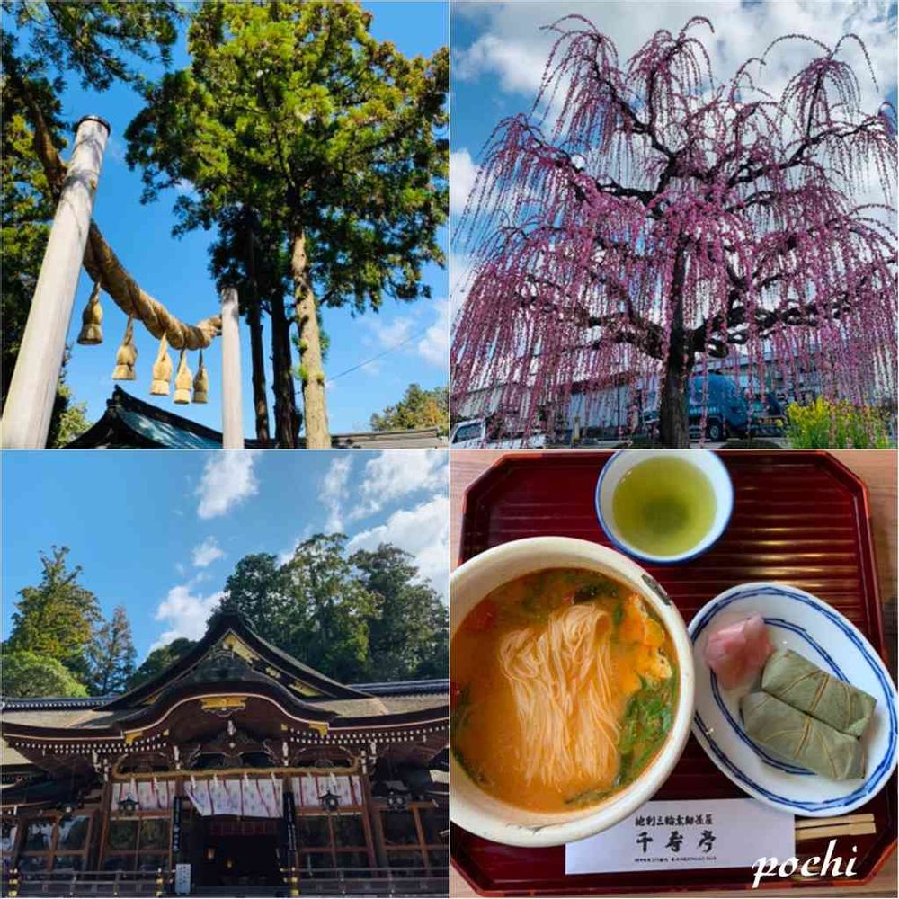 今年も 登拝⛰️されたのですね🐍🥚✨😊 あの枝垂れ花桃(梅だっけ?) の見頃にも 会えたのですね💠🎶 柿の葉寿司とにゅうめんは 美味しいです😋❣️