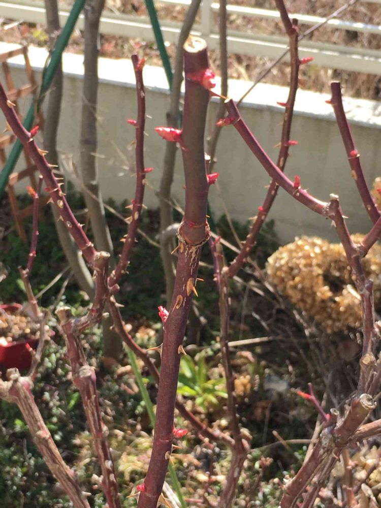私の庭のバラも新芽が出てきました🌹楽しい季節になりました😊