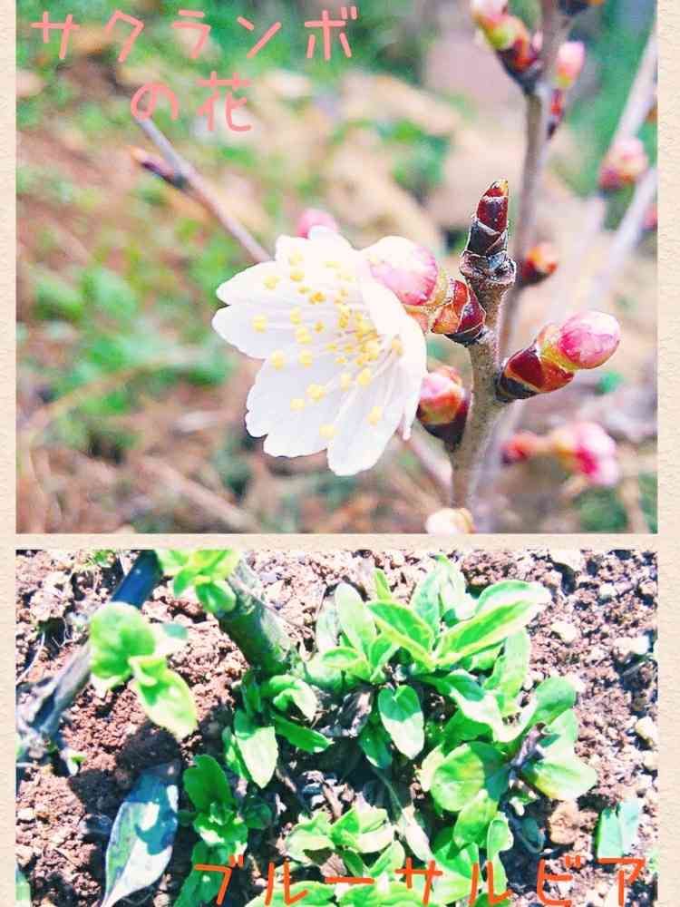 サクランボの花と冬越しして新芽たくさん出してくれてるブルーサルビアです💛💛💛