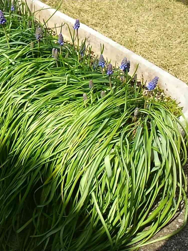 さん😃サラサラロン毛のせっかくの葉っぱだけれど、ムスカリが押されててかわいそうですよね😣葉っぱ真ん中辺りまでバッサリと切りましたが元気に次々ムスカリ出てきてます💕葉っぱ全部切ってないから次の球根のための栄養補給は可能だと、勝手な判断でしてます笑笑