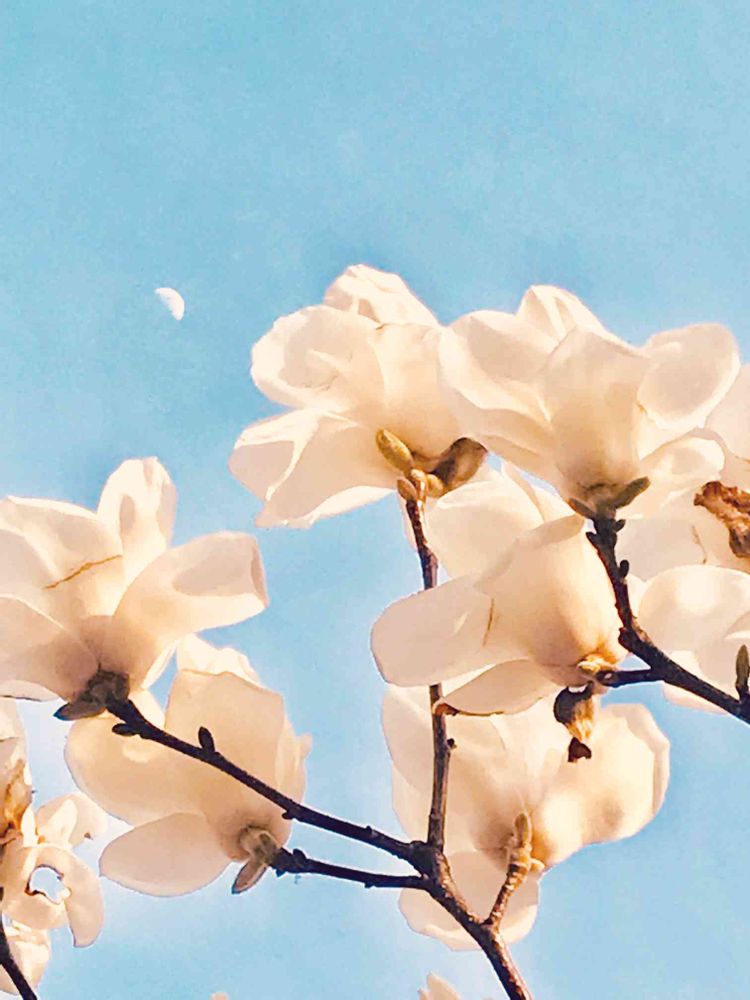 コーンフラワーさん、こんばんは😃🌃淡い空にモクレンが綺麗❗月を入れて写す所がさすがですね~🎵おやすみなさい✨素敵✨な夢を🌛