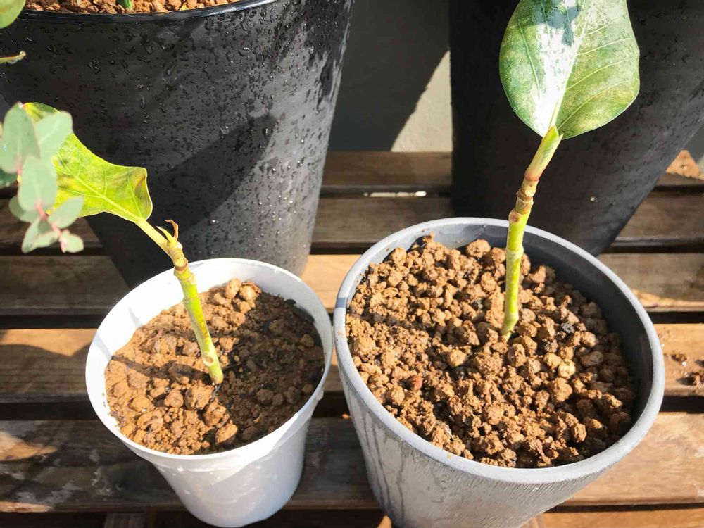 暖かくなりフィカスベンガレンシスの挿し木に葉っぱが生えてきました↟⍋*