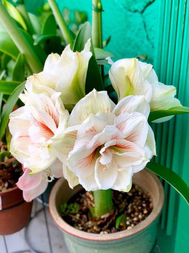 白いアマリリス、オレンジのスジ入りで綺麗ですよねー👍私も初めて見ました👀✨✨✨