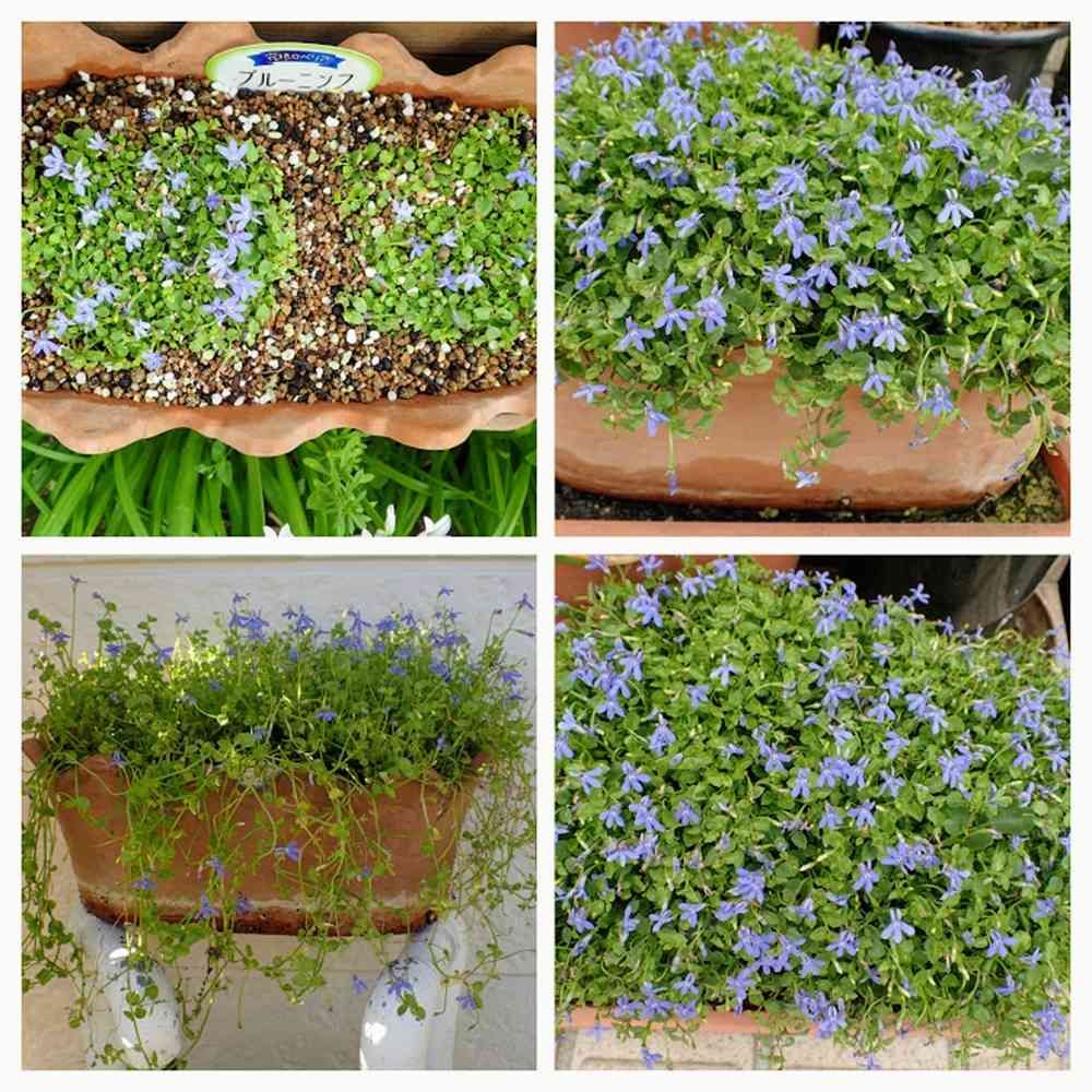 今日のお花、ロベリアです。これはちょっと珍しい宿根ロベリアで、ブルーニンフといいます。宿根ロベリアというと、普通は、サワギキョウや紅花サワギキョウの交配種を思い浮かべますが、これはとっても小さな這性の宿根ロベリアです。4月に2苗を植えて、6月には、こんもりと茂り、9月には鉢からしだれてふんわりとした感じになりました。半年以上休みなく咲き続けてくれて、しかも、移り行く姿の変化も楽しめて、お買い得だったなあと思います♪ただ、冬には地上部が枯れているのですが、生きてないような気もします。室内にいれるべきだったかも^^;;;;