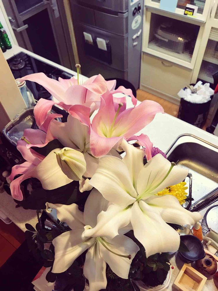 キッチン,ユリの花,花のある暮らしの投稿画像