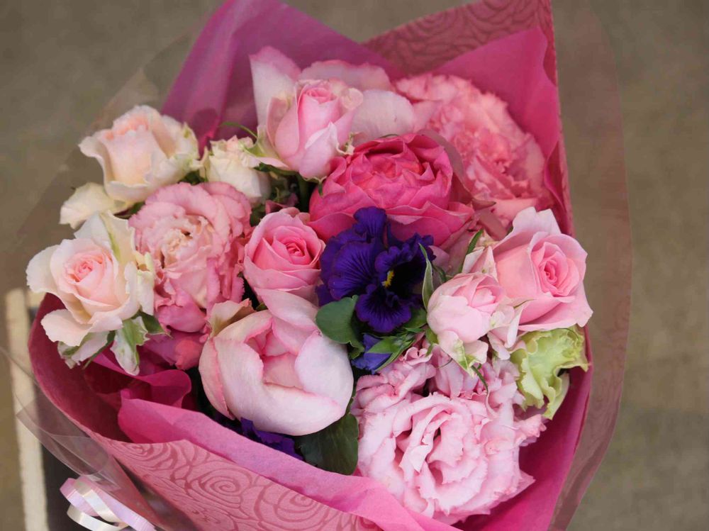 アトリエKさんのスミレ,トルコキキョウ,バラの投稿画像