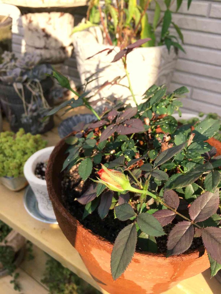 棚,ミニバラ コーヒーオベーション,ミニバラ鉢植えの投稿画像
