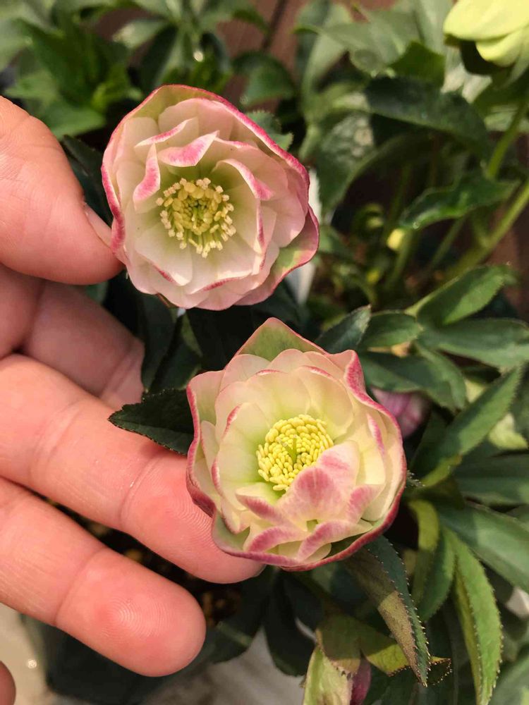 外側が可愛らしいピンクで、内側がすこーしグリーンが入っていて、とっても可愛らしいクリスマスローズさんですね🌸こんな色合い大好きです☺️💕