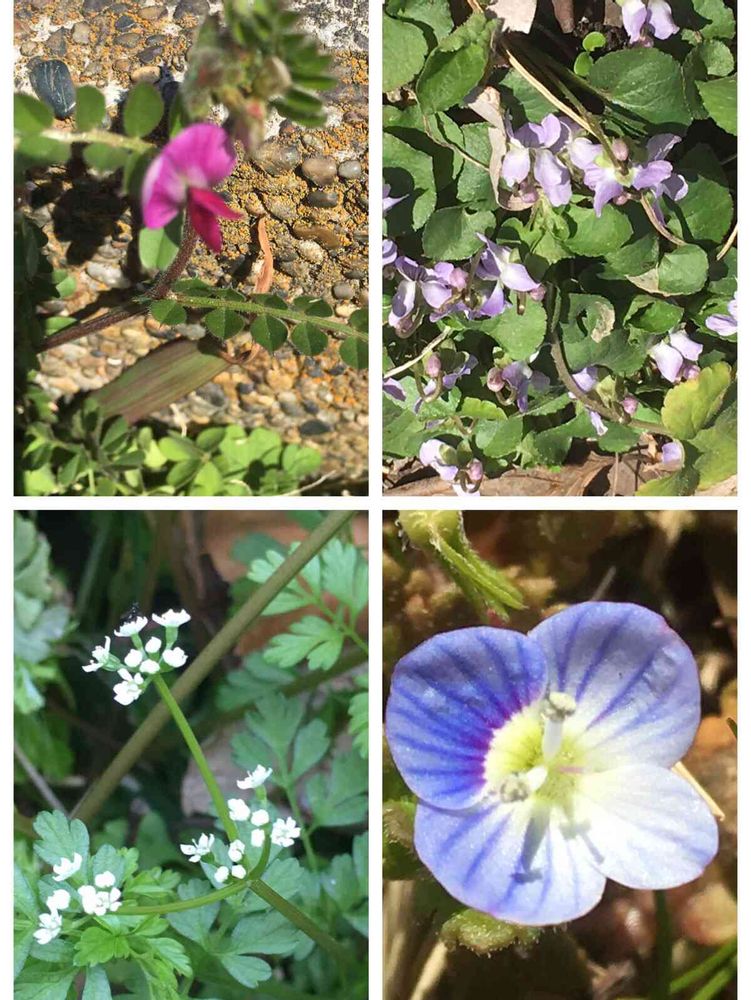 左上 カラスノエンドウ 春になると草むらとかで良く見ますね☺️
