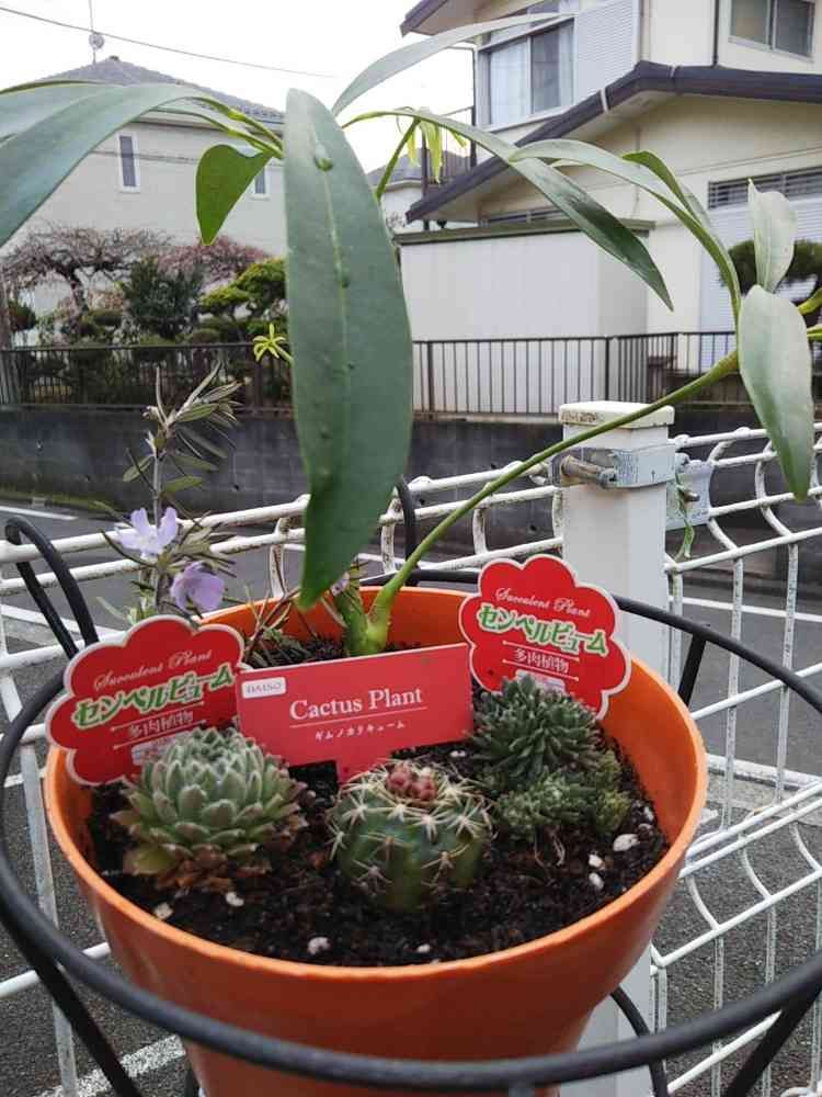 昨日、ダイソーで買った観葉植物とサボテンの4種類を寄せ植えしました😆🌿