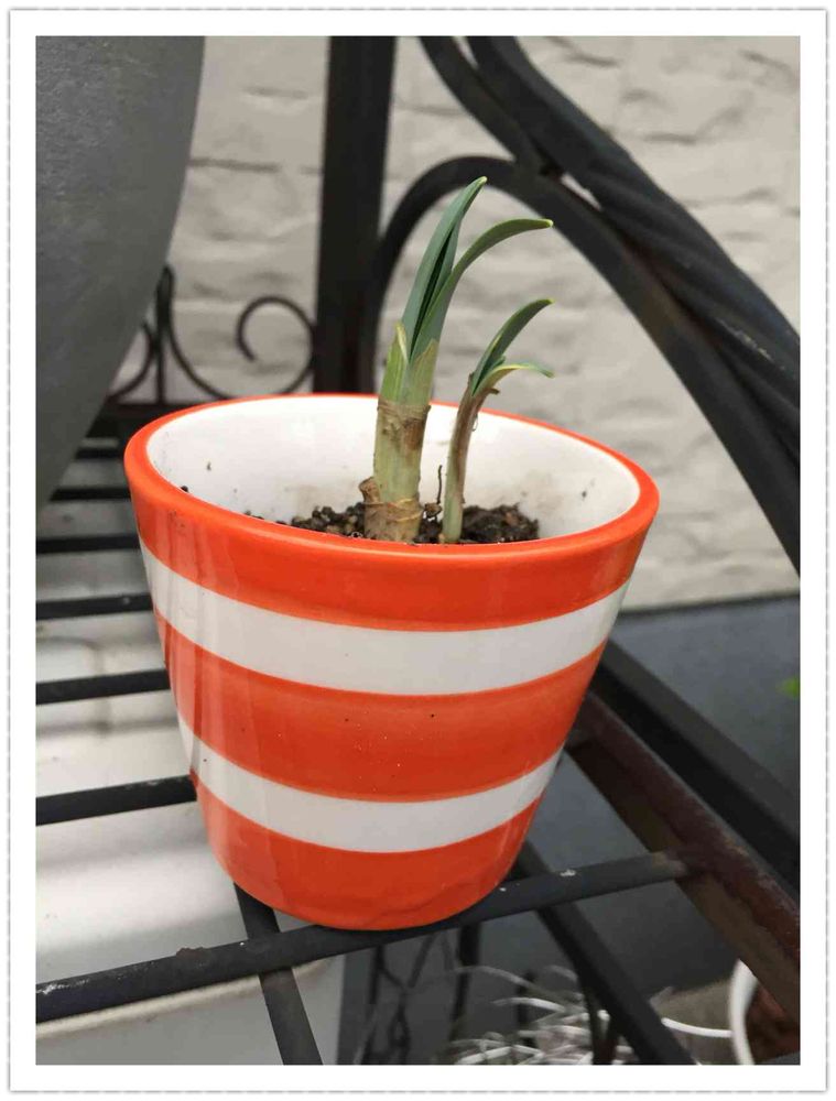 球根が剥き出しになった水仙の赤ちゃんを見つけました。まだ大丈夫だと思い鉢でリハビリしてます。(^.^)