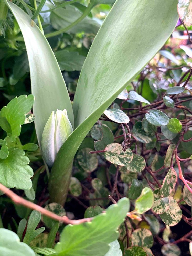 こちら同時期に植えた、他3種の原種系さんに先立ちお花が咲きそうです🌷