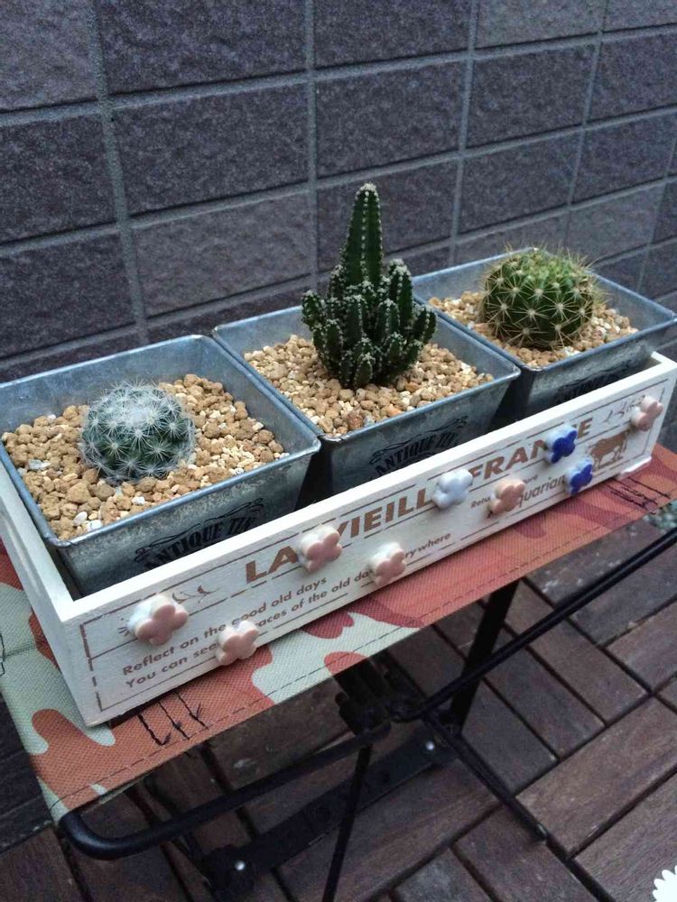 100均一で購入したサボテンです。元気に育ってます(^_^)サボテンもいろいろな種類があって奥深さを感じます。