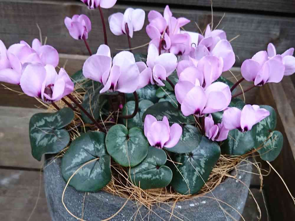寒い冬からずっと屋外で健気に咲き続けている原種シクラメン“コウム”。 今日は雨が降ったり止んだりと不安定な1日でしたね。