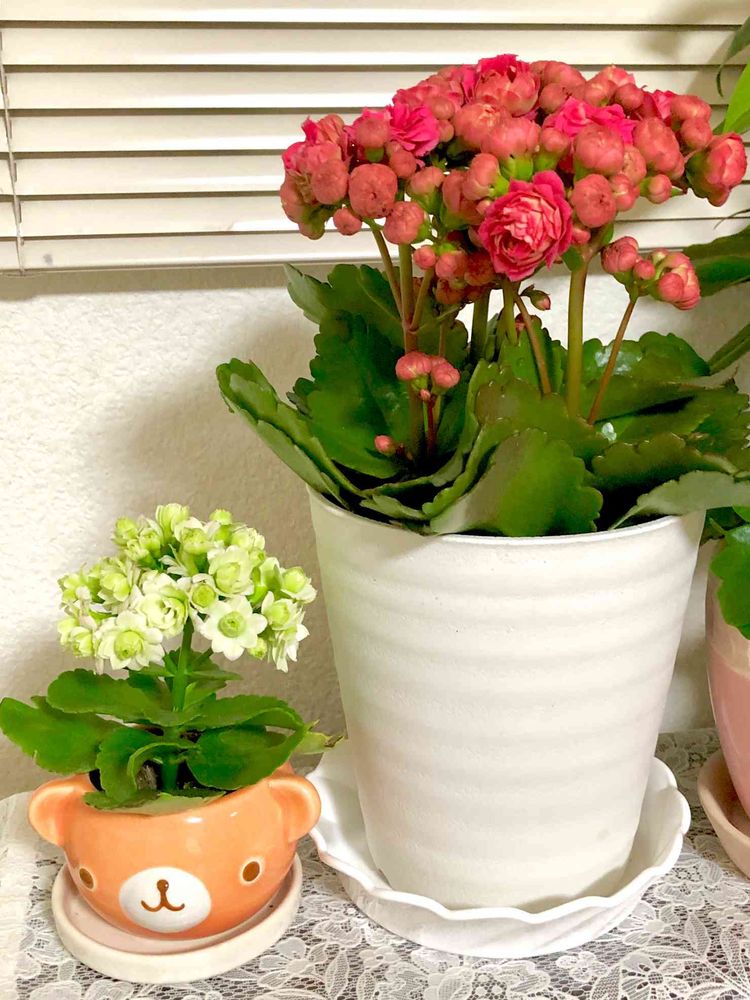 くーちゃん(鉢がクマ🐻)とモアフラワー新品種のギータさん🤗