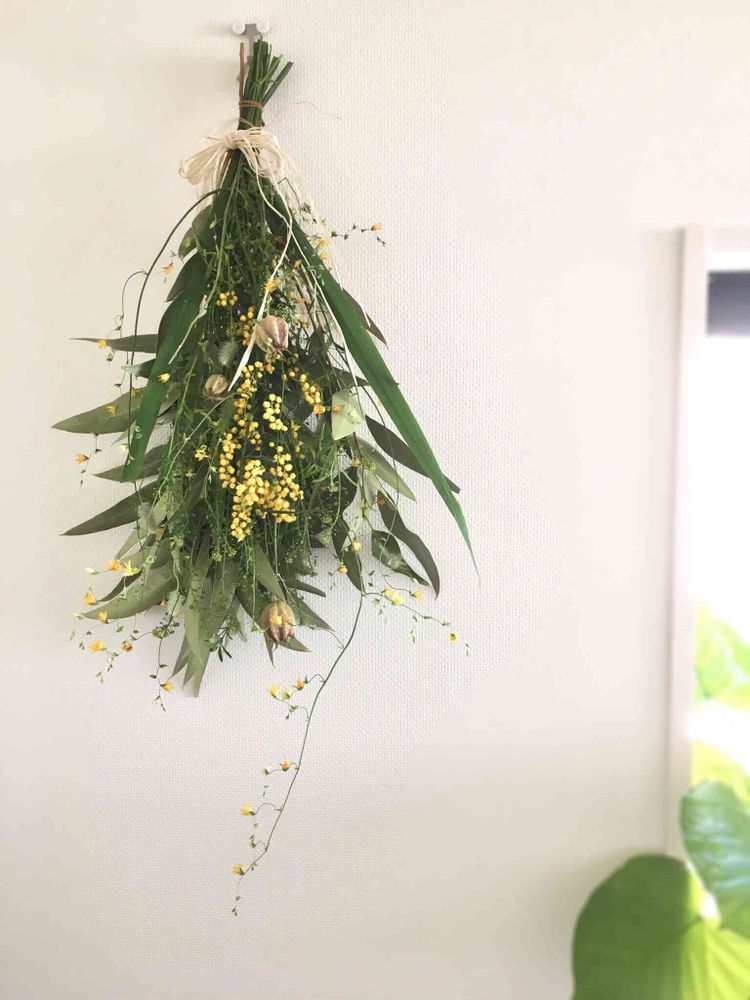余った花材でスワッグ を作りました。メラスフェルラが可愛いです。