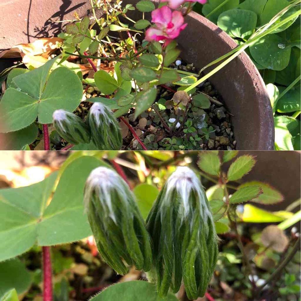 ミニ薔薇を挿し木した鉢の中からいつの間にか傘☂️を出してる。