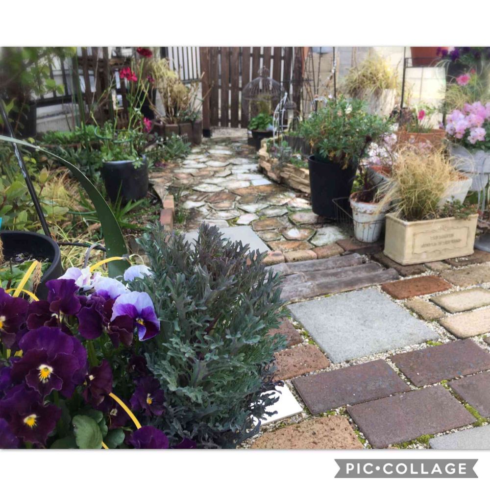 お庭の奥なの?レンガに花鉢やリーフ、雑貨がバランスよく配置されてていい雰囲気だよ💓💕