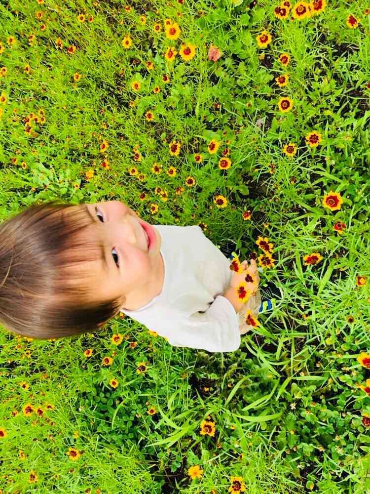可愛いお花に可愛いお子さん。幸せそうな笑顔がまたいいね~。