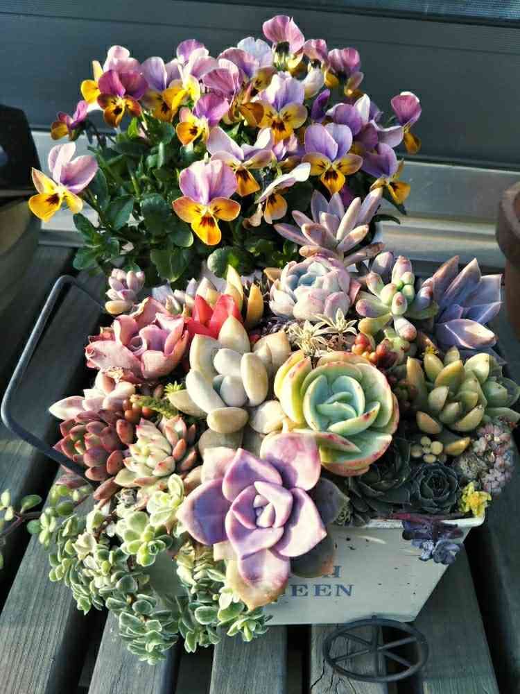 ビオラも可愛いし多肉の寄せ植えはすごく