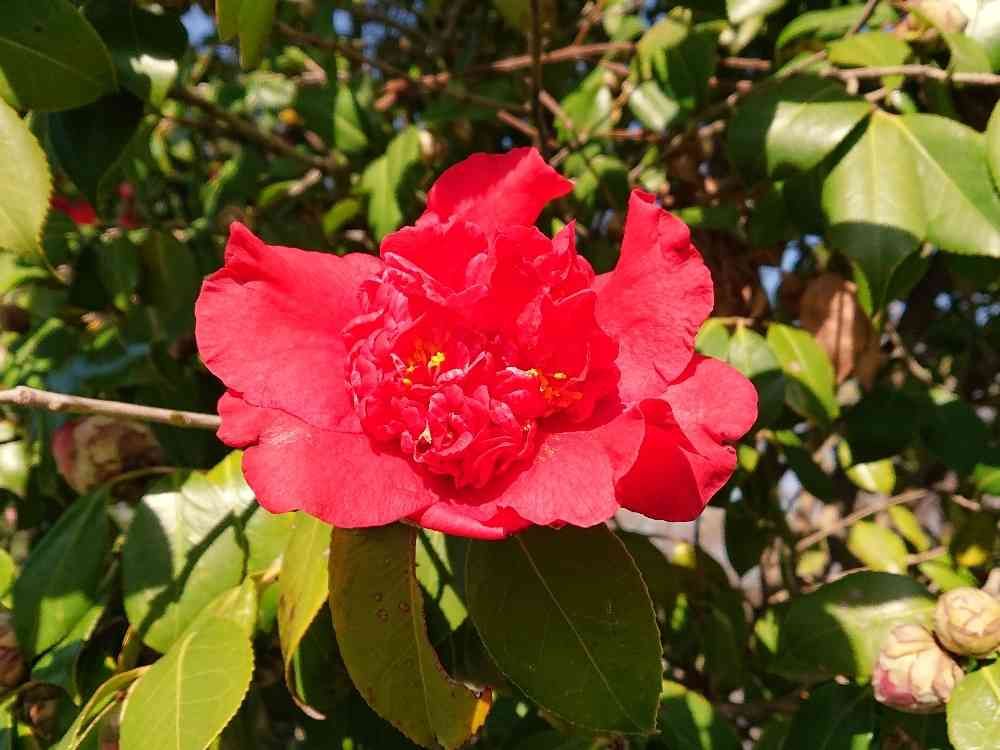 濃い艶やかな葉っぱの中に映える真っ赤な大輪🏵️