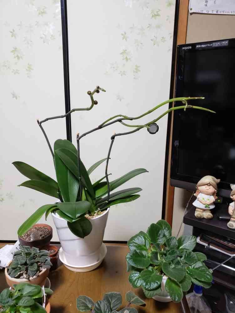 胡蝶蘭がぐんぐんと二番花を伸ばしています。いつ咲くのでしょうか?