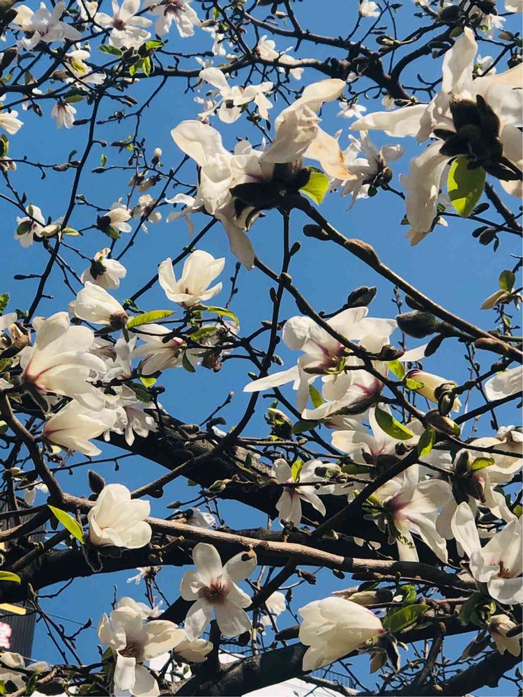 わぁー😊♡ まだ、コブシの花、今年はチラッとしか見てないんだ。色んな角度の沢山のお花、近くで見ているよう♬♪ 青空の青にコブシの枝や花の模様。素敵💚 透明な綺麗な空気を感じたよ❤️