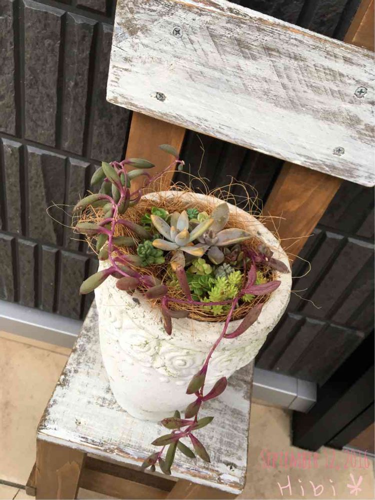 シャビーな感じの鉢なのにとってもお安かったの❤️この鉢は縦長でもう1個はもう少し幅広い感じのを買いました。