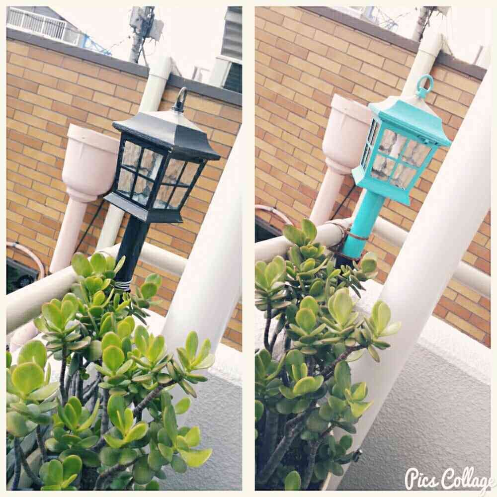 黒系のニトリのソーラーライトをターコイズブルーに塗り替え。