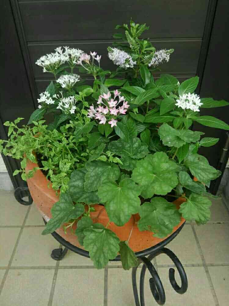 新しく迎えたへーべとヒューケラの寄せ植えを作りました🍀