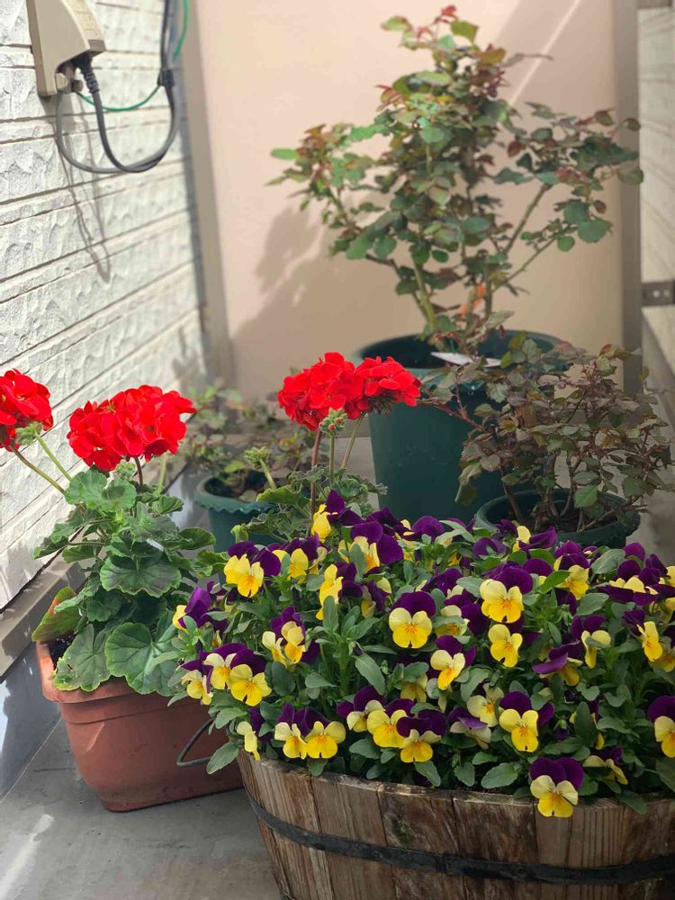 バルコニー/ベランダ,ゼラニウム,ミニバラの投稿画像