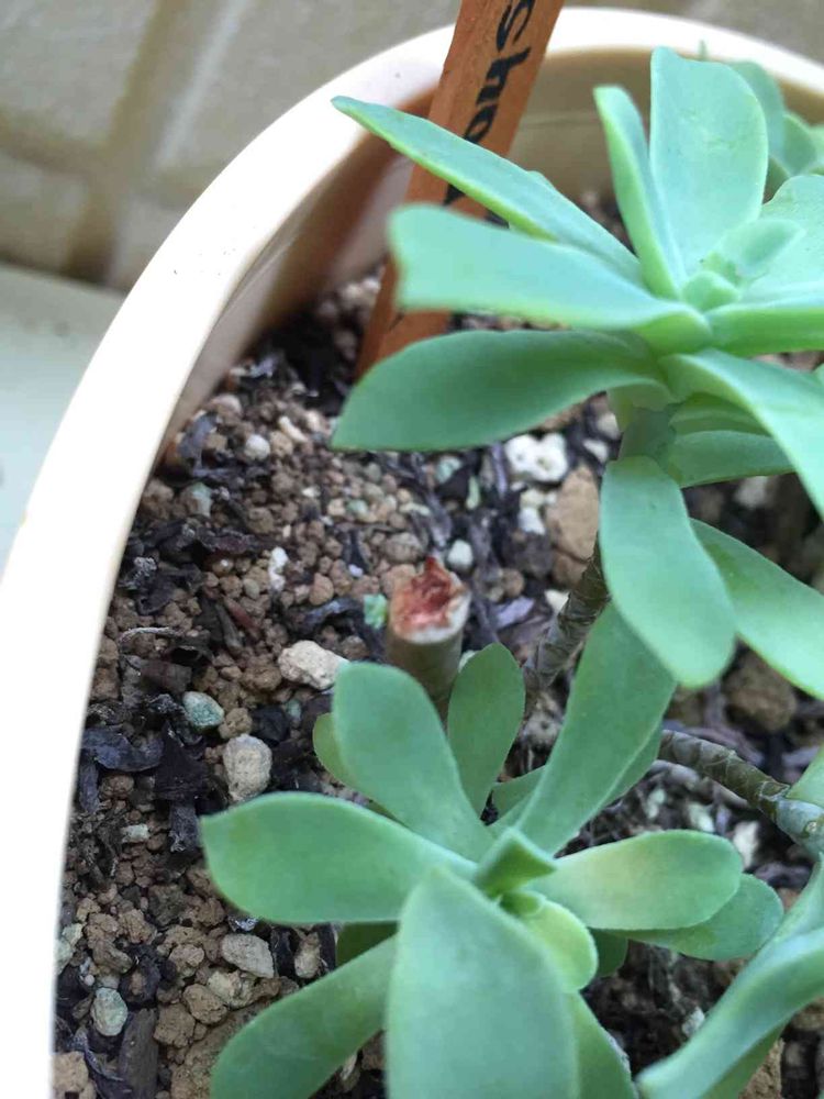 こちらは3年前に頂いた薄化粧。多肉だと知らず、興味もなく、適当に育てたら適当に育った。カットしたところから赤ちゃんが❤️これからはしっかり育てますね。