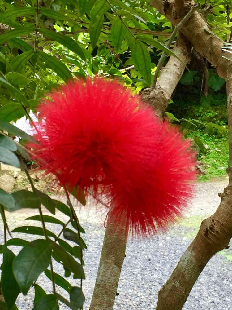 沖永良部島の昇竜洞の入り口に オオベニゴウカン が咲いておりました。 以前東山植物園で キンゴウカンという 黄色のものを見かけましたよ。