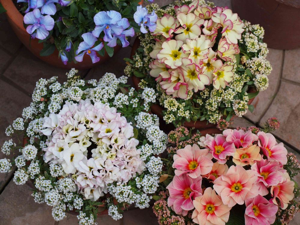 先日のプリムラとアリッサムの簡単寄せ植えは、上から見ると可愛いです♪