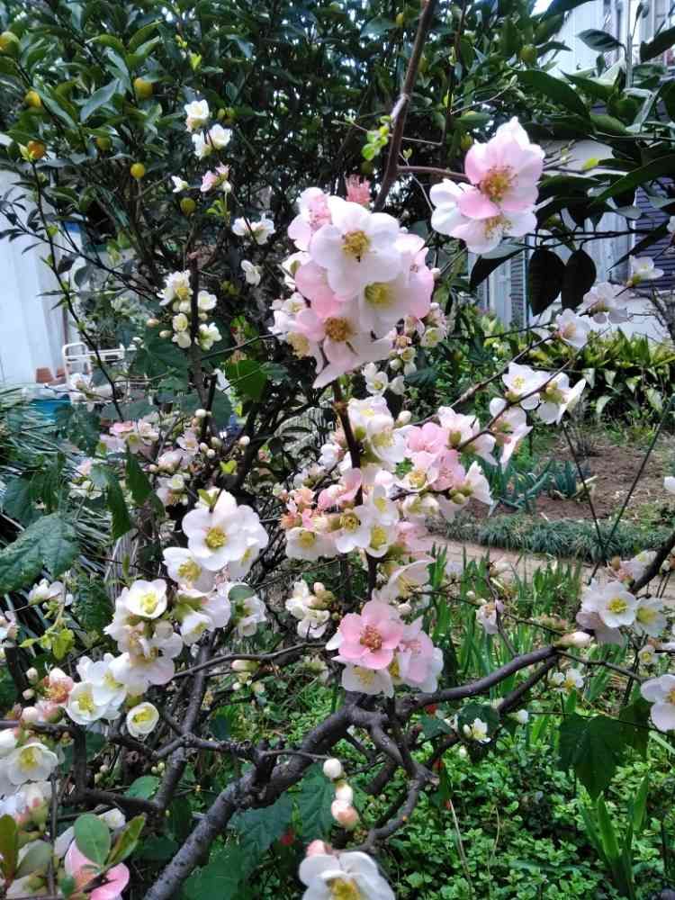更紗のボケが満開です。私が今の所に引っ越してきたときには、すでにありました。60年以上前です。(*_*;