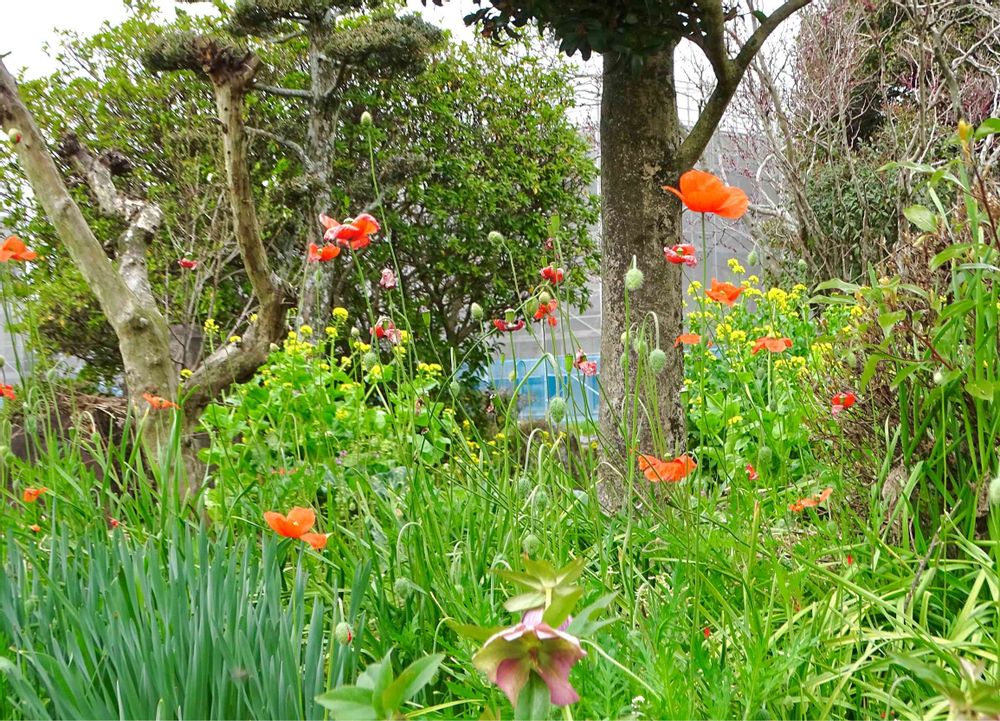 桜はまだでしたが、ナガミヒナゲシが早くも、始まっていました。