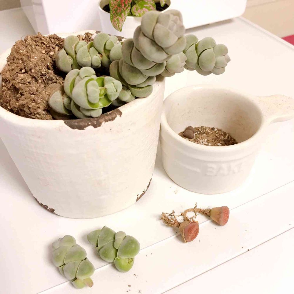 お気に入りの玉稚児ちゃんとちっちゃい日輪玉を移動させてたら鉢を落としてしまい一つの玉稚児ちゃんが3分割に😱💦💦