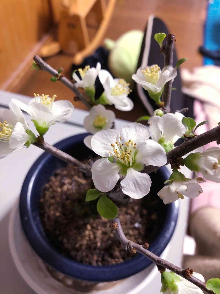 ホワイトデーのお返しの木瓜の花。蕾が膨らんできていましたが、まだまだ咲かないだろうなぁと😅今日は北国も4月下旬の暖かさで一気に開花💦