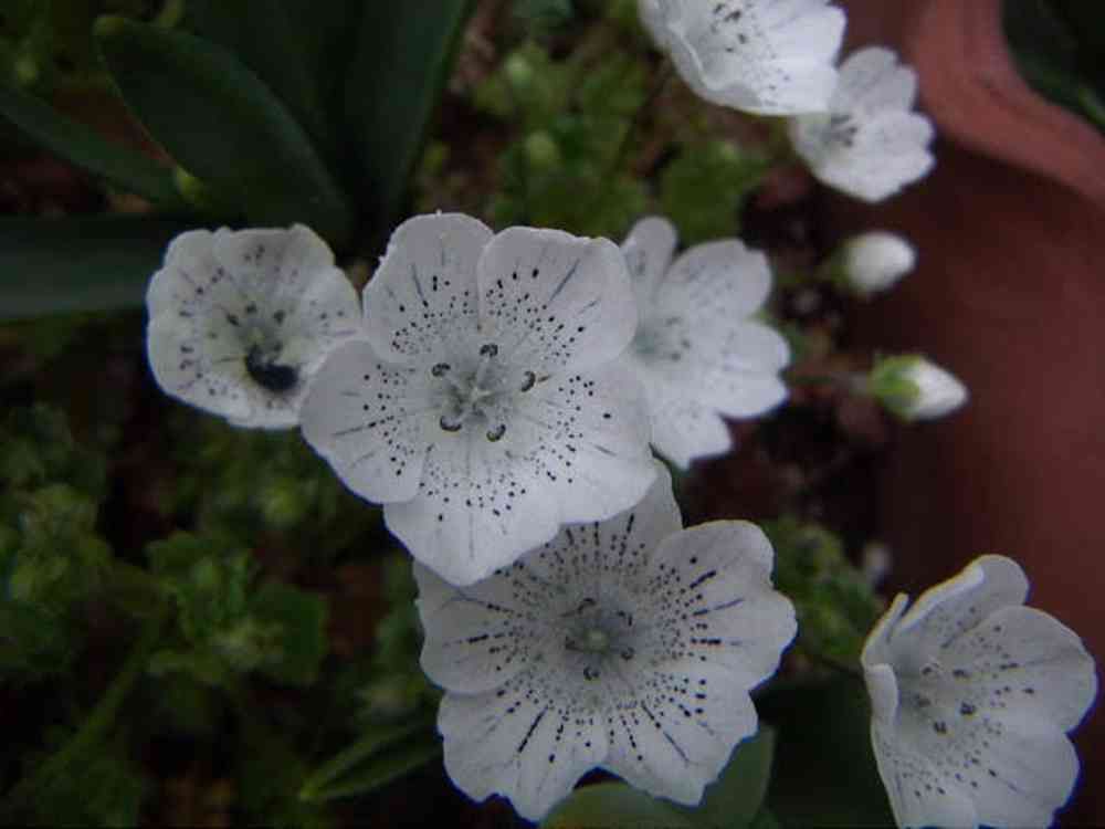 今日のお花、ネモフィラです。白花のスノーストーム、ペニーブラックを引き立ててくれるこの色も好きです、細かなスポットが入っているのもいい感じです(*^^*)