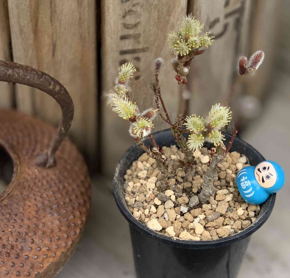 ピンクネコヤナギは水差しで根っこも出てきたのでもう少ししたら鉢にします。水切れ注意。ネコヤナギ1人マイブーム中😅