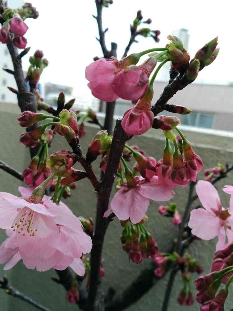 我が家の桜🌸、蕾さんがいっぱ~いのをお持ち帰りしたの自宅花見かなぁ~😁