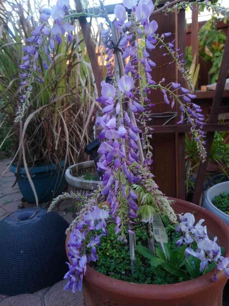 日本の藤と同類のテキサス ウエステリアが咲きました。未だ苗木が育っていないので低いんですが、成長を待たず、花が咲きました🤗。