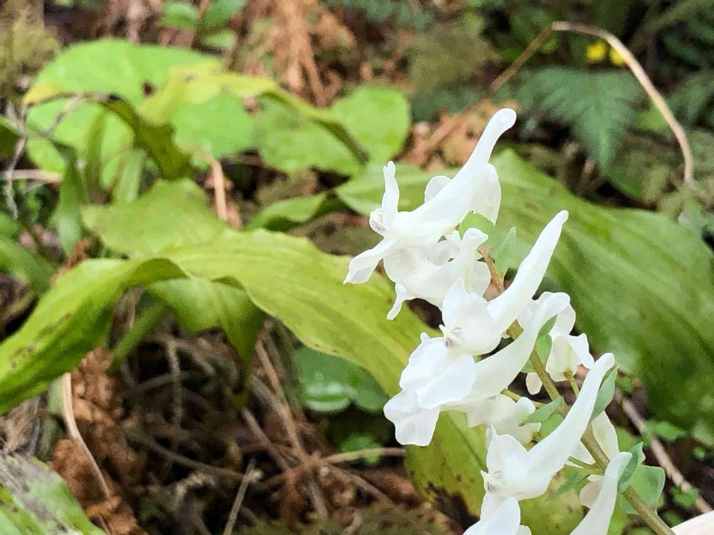 真っ白なコリダリス マルケンシスです。ヤマエンゴサクの仲間で、球根系のコリダリスです。何年か前にイギリスからゲットしました。どうにか毎年花を咲かせています。