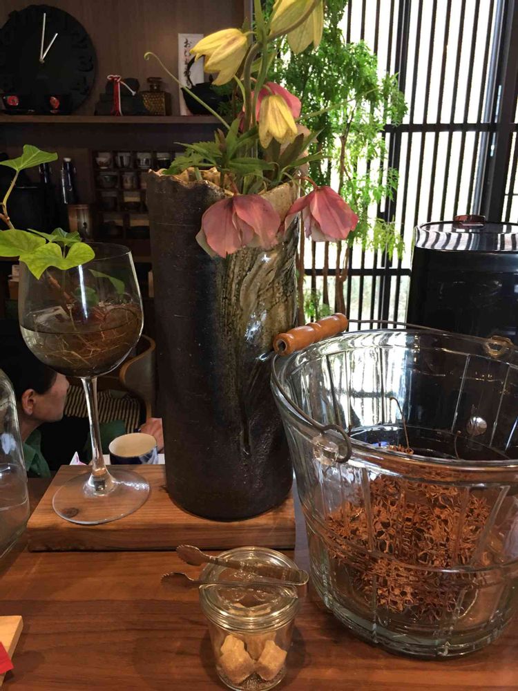 僕の好きなお店。バイモユリ、クリスマスローズ、アメリカフウの実。この木ノ実は私が公園で拾って持ち込んだものです。