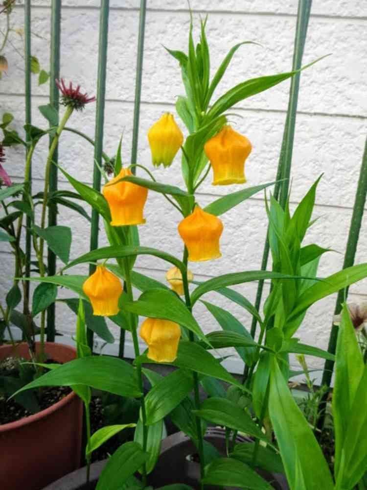 今日のお花、サンダーソニアです。可愛らしいベル型のお花が釣り下がっているユニークな夏の球根植物です。葉っぱの先に、ちょろりと巻きひげが出ていて、それで支柱に絡まって細い茎を支えています。魅力的なお花なので、何度か育てましたが、球根が夏の暑さに傷むのか、葉が枯れてから掘り上げても小さく貧弱になっていて、次の年に使えたためしがありませんorz(2年目植えても発芽せず腐ったりします;_;)写真は2016年のものです。2017年は失敗してしまい、去年は育ててません。今年も今のところ育てる予定はありません。ほんとに好きなお花なんですけどねー。。。😢