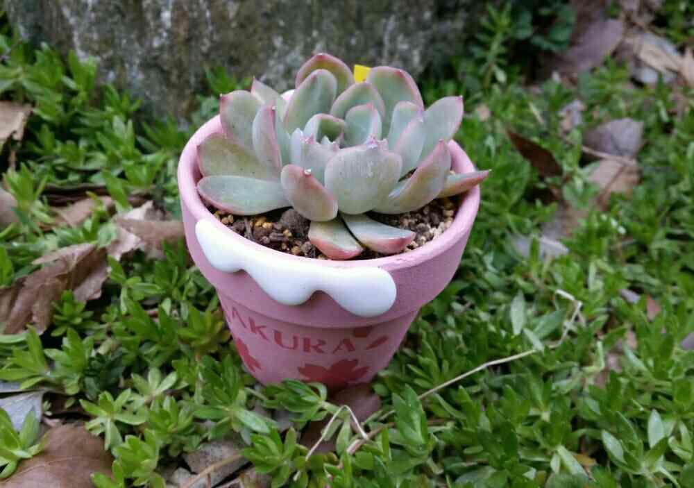 小さな庭,リメ鉢,エケベリア白雪姫の投稿画像