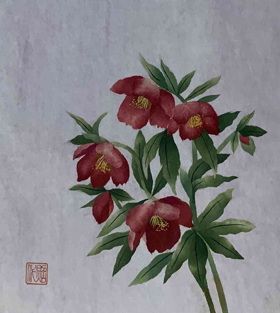クリスマスローズのちぎり絵、微妙な色合いが素敵ですね✨。大好きな薔薇も素敵に和風に合っていて驚きました!。